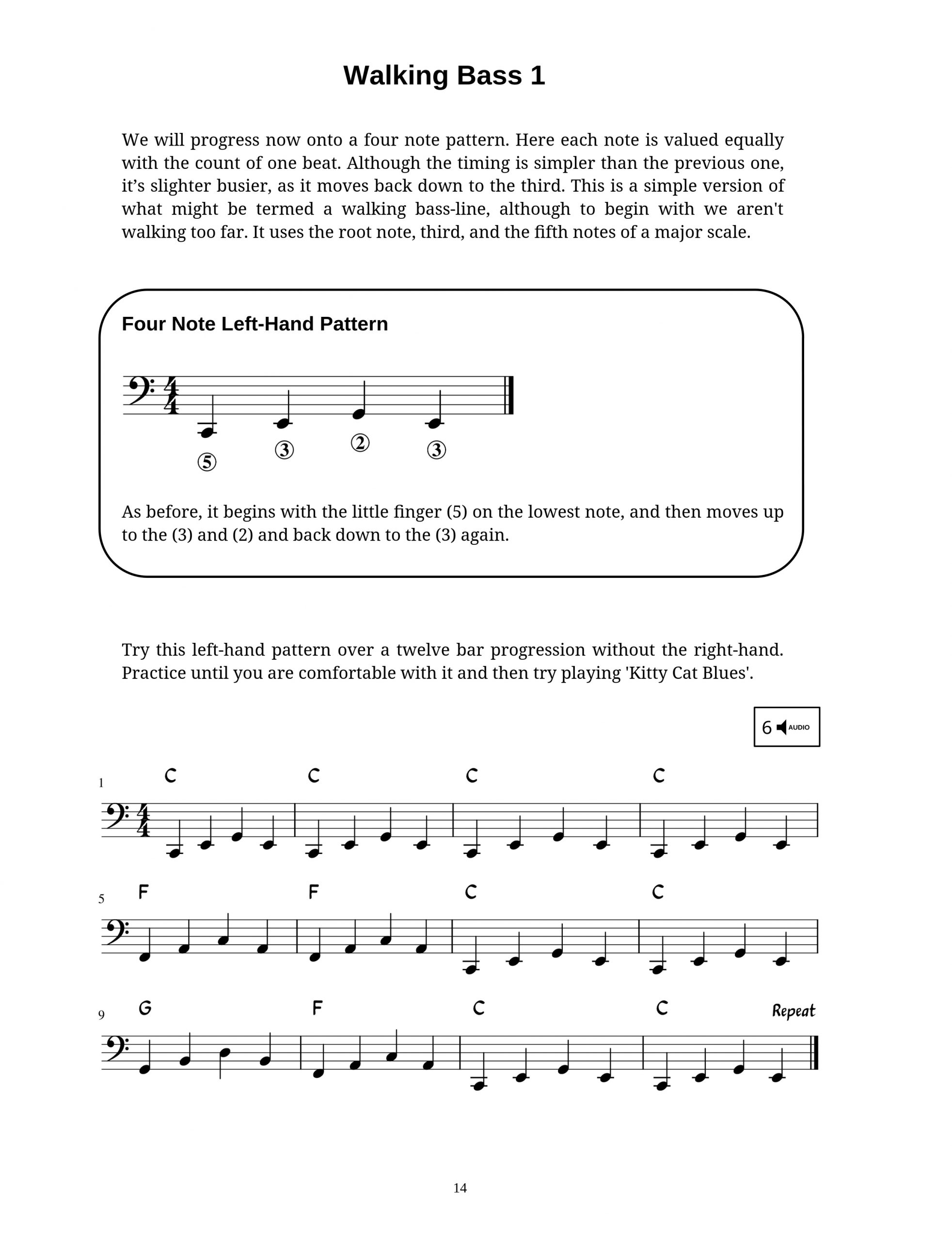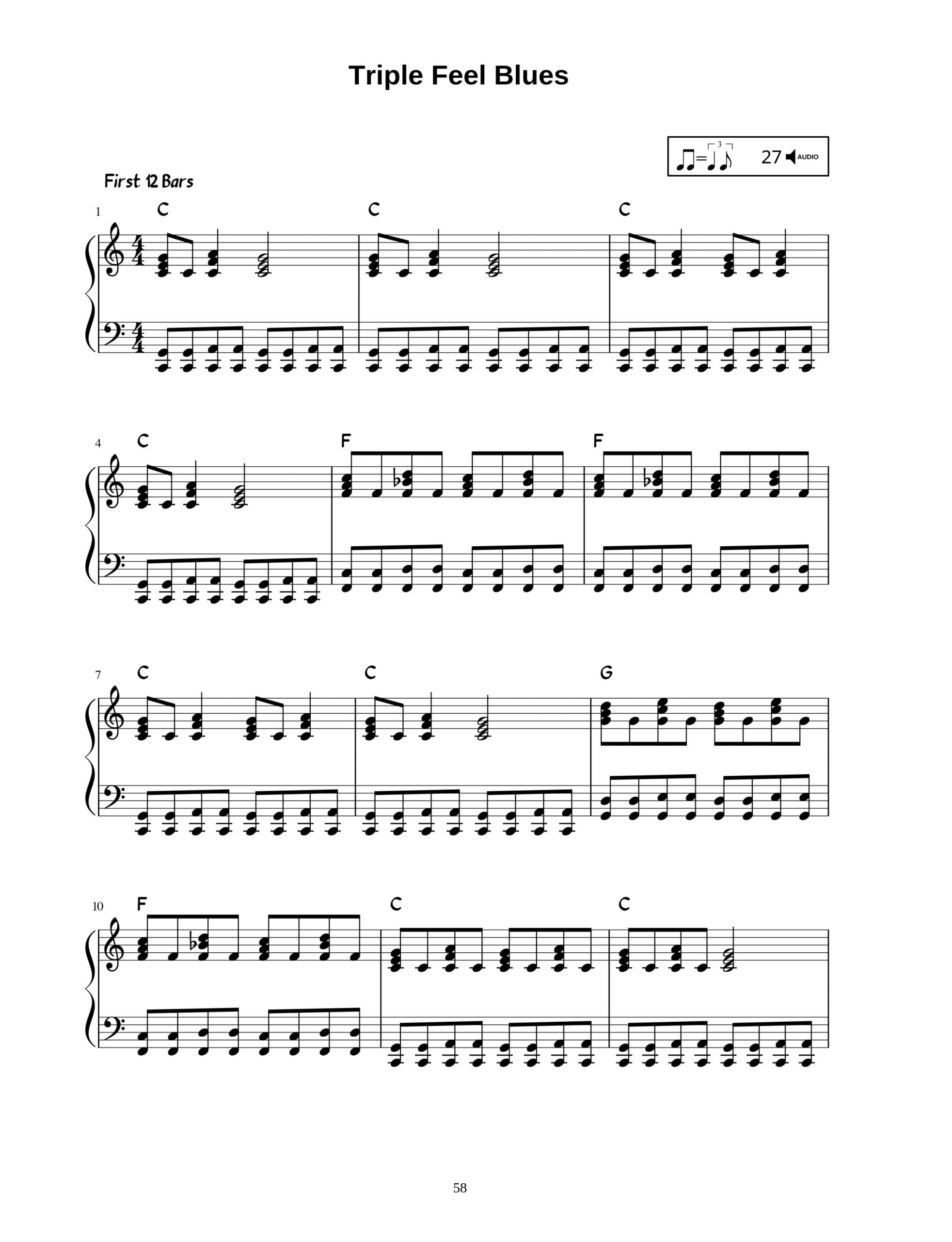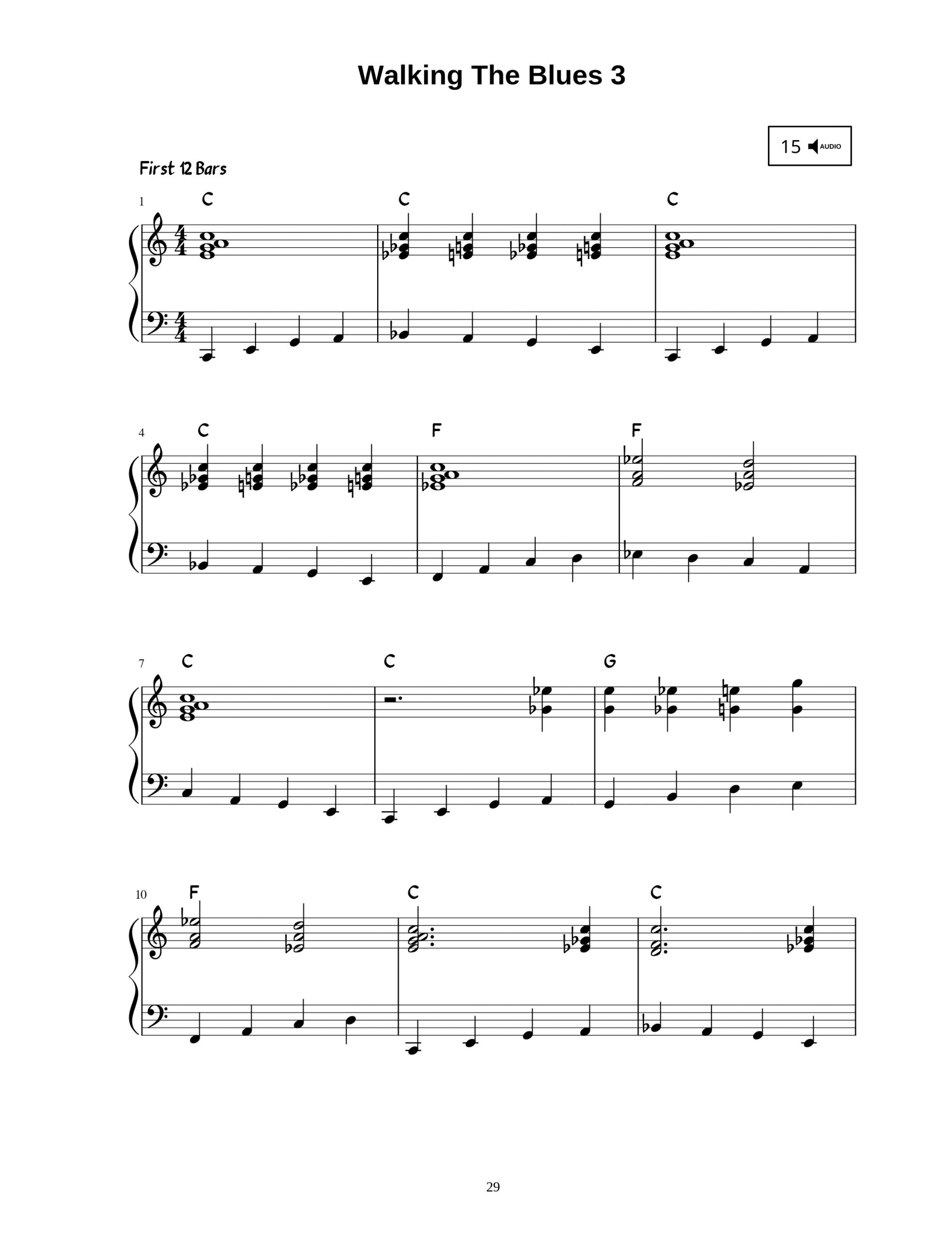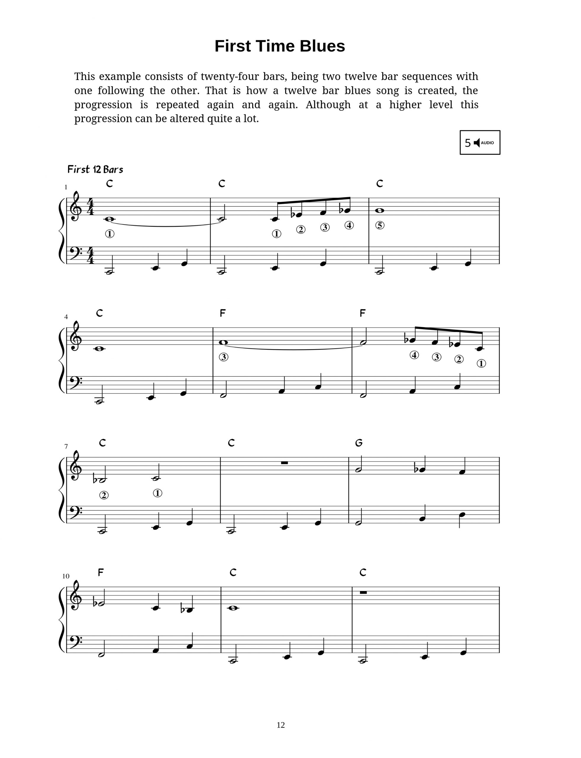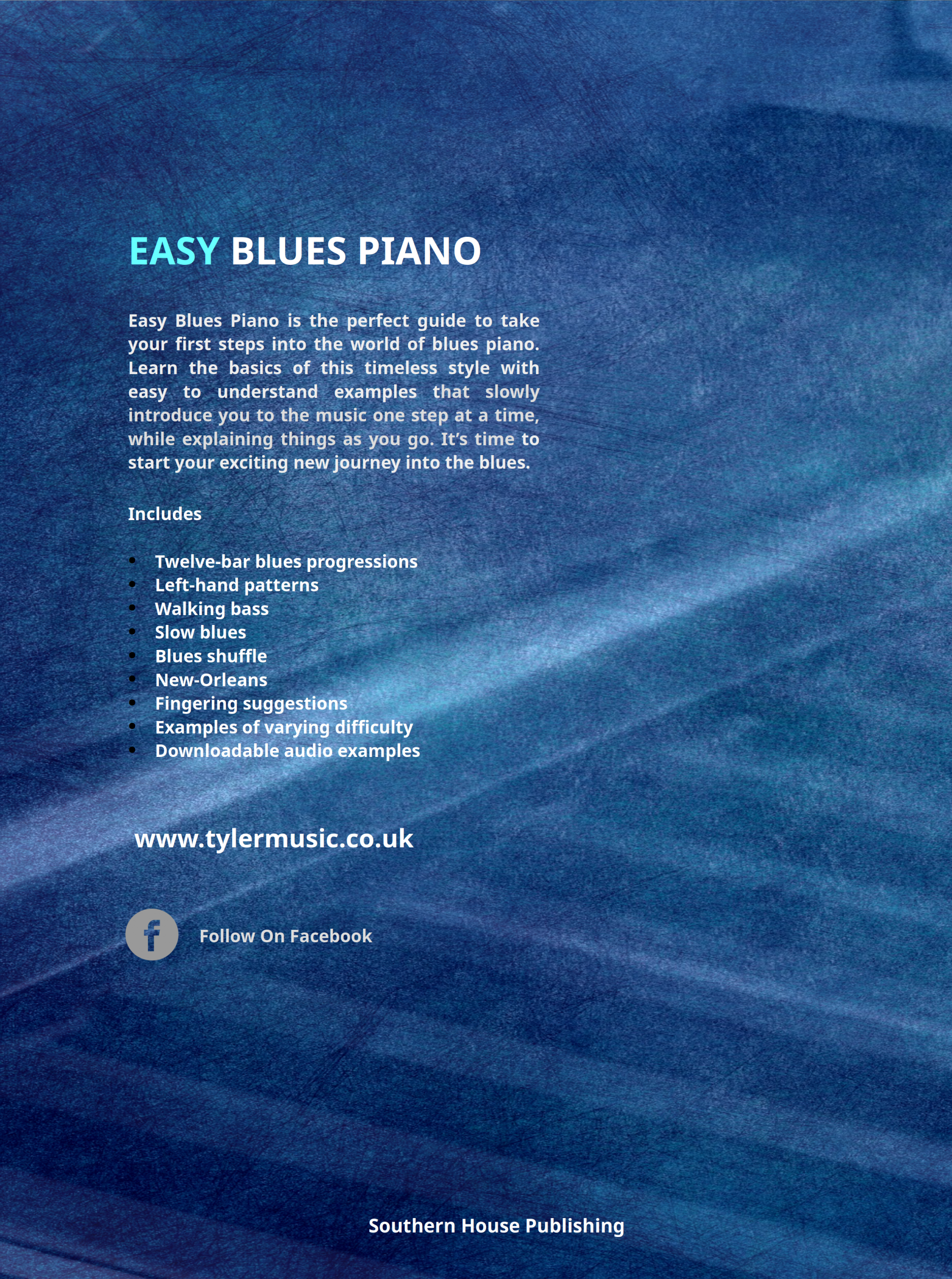 Easy blues piano is the perfect guide to begin to take your first steps into the fantastic world of blues music. It covers the basics of this timeless style, with easy to understand example pieces throughout, that start off easy and gradually increase in difficulty, while adding extra elements along the way. It has clear explanations throughout, along with downloadable audio to accompany each of the music examples. It’s time to start your exciting journey into the blues.