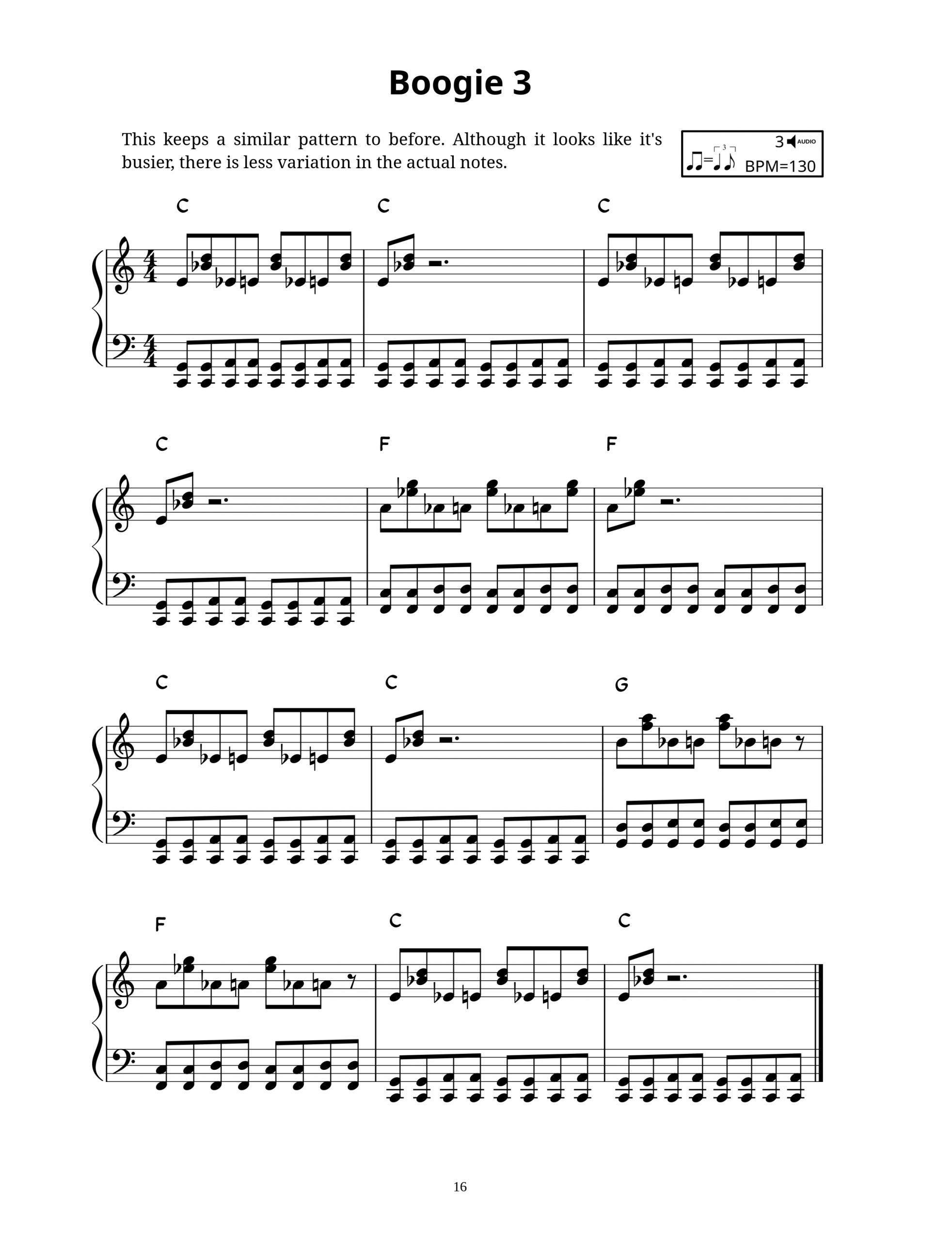 The complete edition of Easy Boogie-Woogie is the perfect guide to take your first steps into this timeless piano style. Including both volumes, it covers the basics, with easy to understand examples that slowly introduce you to the music, one step at a time. With volume two, it takes you a step further again, introducing new ideas and concepts to expand your new found skills. With clear explanations and downloadable audio to help you along, it’s time to start your exciting journey into the world of boogie-woogie today.