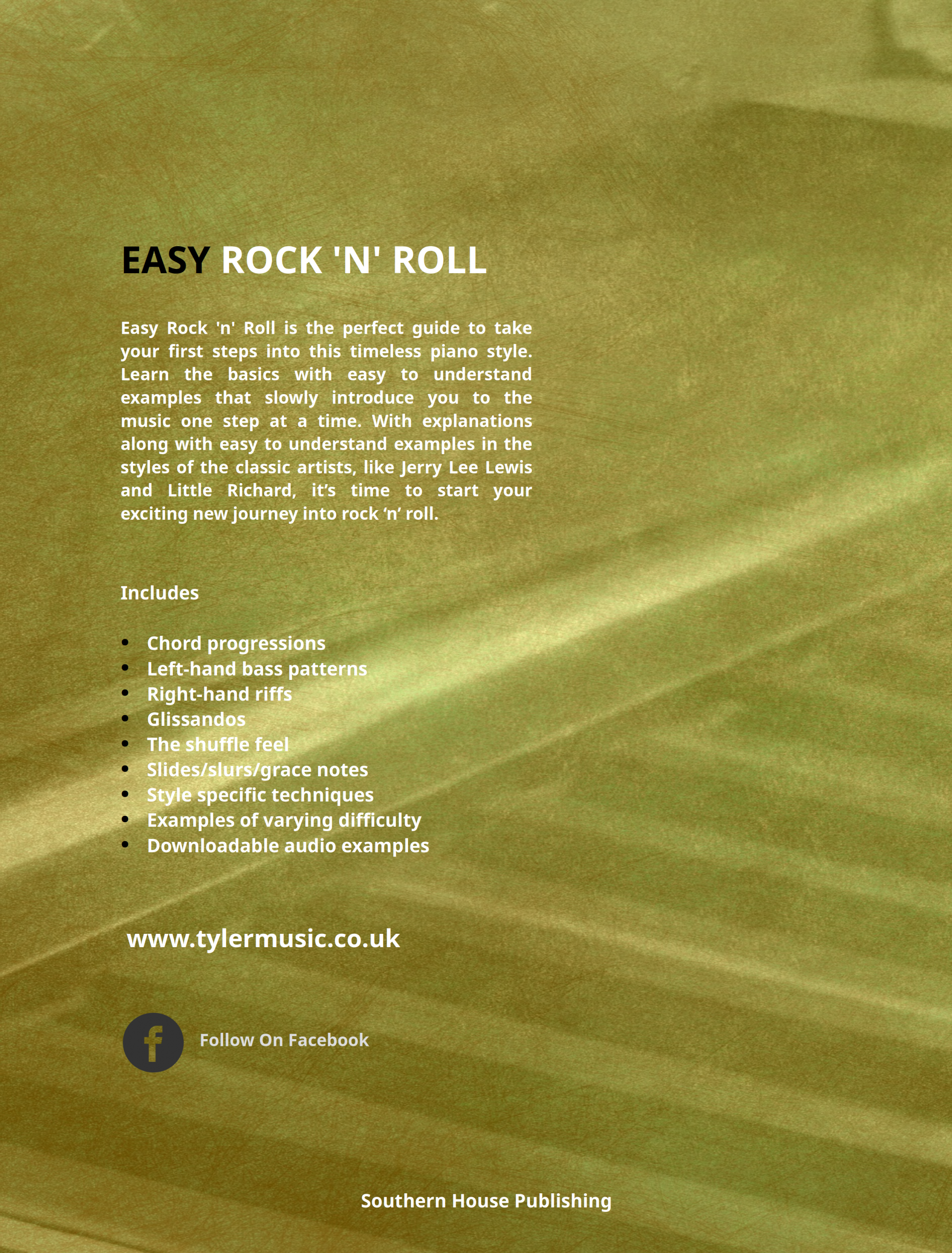 Easy Rock ‘n’ Roll is the perfect guide to take your first steps into this timeless piano style. Learn the basics with easy to understand examples that slowly introduce you to the music one step at a time. It has clear explanations along with easy to understand examples in the styles of the classic artists, like Jerry Lee Lewis and Little Richard. It includes example pieces throughout, that start off easy and gradually increase in difficulty, while adding extra elements along the way. With downloadable audio examples, it’s time to start your exciting new journey into rock ‘n’ roll today.