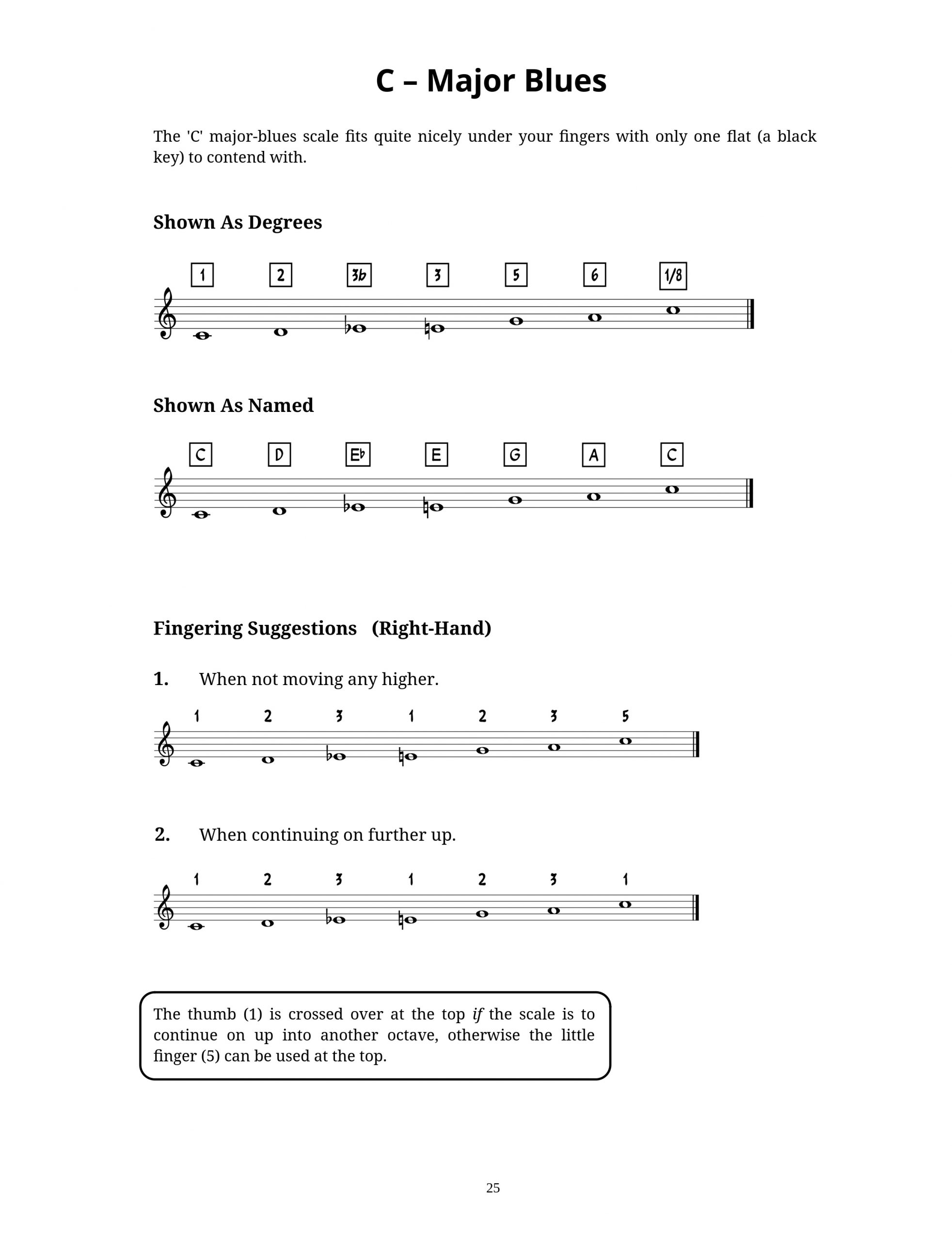 The ultimate guide to learning the blues scales for the piano, to improve both your knowledge and playing. The scales are clearly shown and explained in all keys for both major and minor scales along with fingering suggestions, but it doesn’t stop there. Here we go further, and include ideas like the combined scales and methods of how to practice